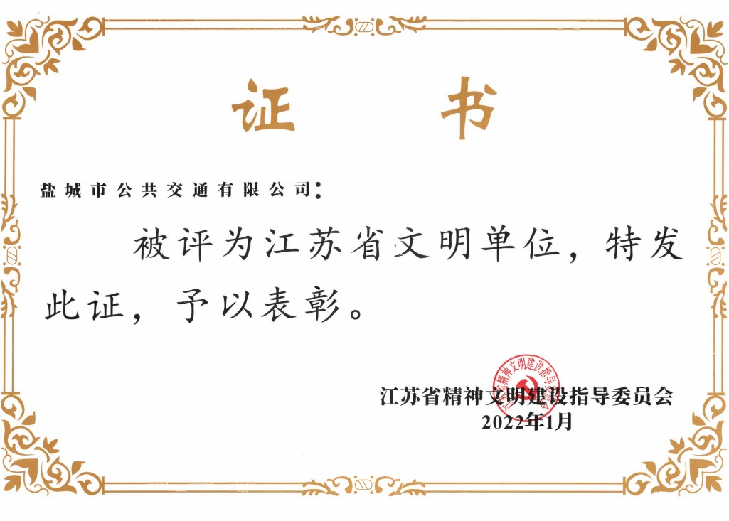 - 2022年1月公司獲評江蘇省文明單位